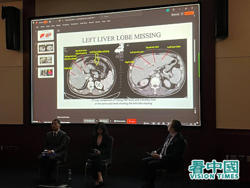 黑龍江省法輪功學員程佩明是已知的唯一一位活摘器官倖存者。因安全原因,他以遠程方式參加了這次座談會。因修煉法輪功,他曾被中共非法判刑八年。會中,他談到,2004年11月16日,在他不同意的情況下,大慶監獄把他押到大慶第四醫院,強行做了第一次手術。2005年3月,他從醫院出來時,監獄的警察、犯人都知道他被做了移植手術。2006年3月2日,他又被送到醫院,要給他再做移植手術,但他幸運走脫了。之後,中共公安部對其懸賞抓捕。他於2015年輾轉逃離中國,2020年被營救到美國。來美後,他做9次不同的醫學影像檢查,結果顯示,他的左側肝臟和肺臟被部分摘除。