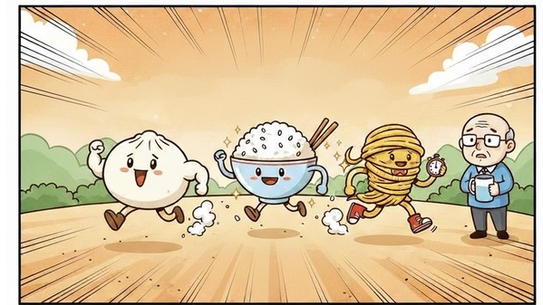 米饭、馒头、面条吃哪个好?3招缓升血糖再不怕主食(图片来源:手绘插图 看中国 李齐 )